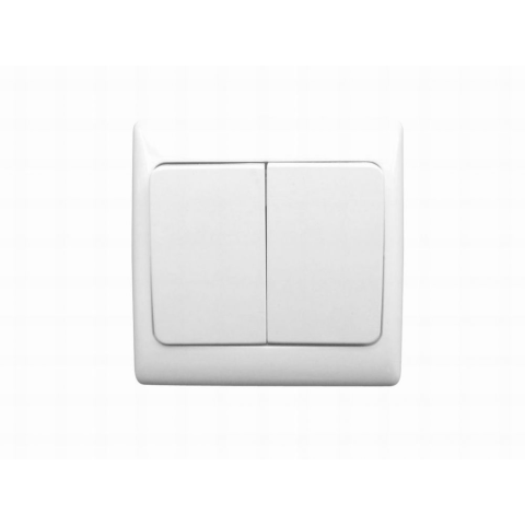 Olympic süllyesztett csillárkapcsoló fehér színben, kerettel. IP20 védelem : beltéri használatra- két billentyűből álló kapcsoló. Egy fogyasztói csoport megosztott kapcsolására (például egy csillár), illetve két különálló helyiség egy helyről történő fel-és lekapcsolására alkalmas.