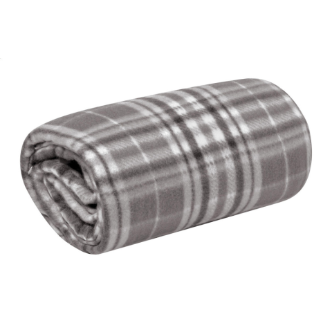 RPET polár polár takaró kockás mintával, hordtáskában. RPET poliészter, 200 g/m².