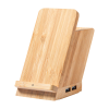 Multifunkciós bambusz tolltartó mobiltelefon-tartóval, vezeték nélküli töltővel (5W) és 4 USB porttal (USB 2.0.). USB töltőkábellel szállítjuk.