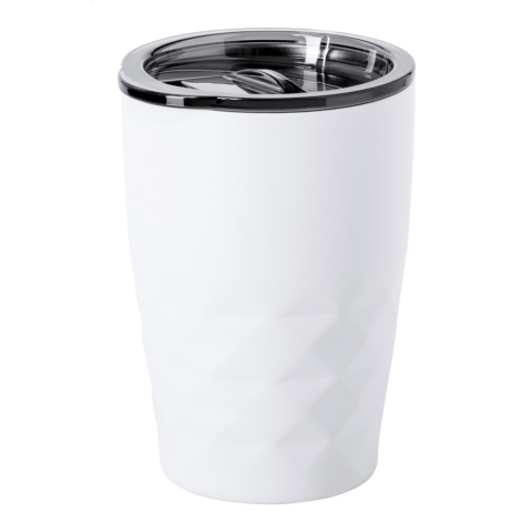 Duplafalú rozsdamentes acél részszigetelt thermo pohár műanyag fedéllel. 350 ml. A rézszigetelésnek köszönhetően 12 órán keresztül melegen tartja az italokat és 24 órán át hidegen.
