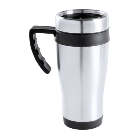 Rozsdamentes acélból készült, duplafalú thermo bögre, színes műanyag részekkel és fogantyúval, dobozban szállítjuk. 450 ml.