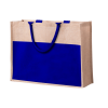 Laminált juta anyagú strandtáska, pamut hordfülekkel és elülső zsebbel.