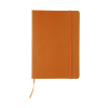 PU bőr borítású jegyzetfüzet 100 sima lappal, könyvjelzővel, gumipánttal zárható.