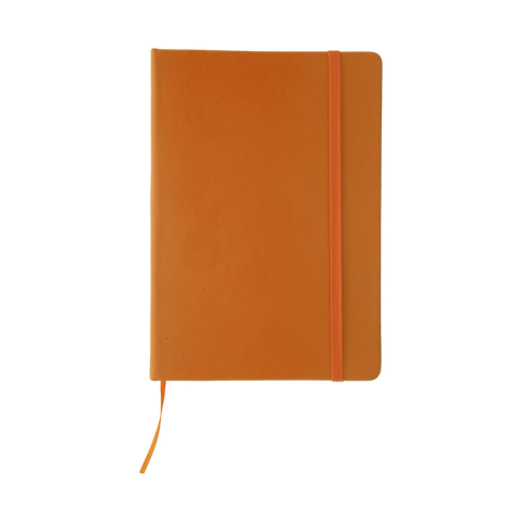 PU bőr borítású jegyzetfüzet 100 sima lappal, könyvjelzővel, gumipánttal zárható.