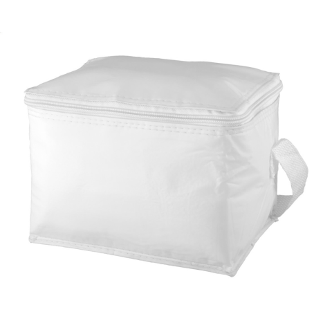 Cipzáras hűtőtáska alumínium béléssel 6 db 0,33l-es italdoboz részére. Anyaga: PVC.