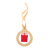 Bambusz furnér és akril karácsonyfadísz arany szalaggal. A szalagot a dísz mellé csomagolva szállítjuk.