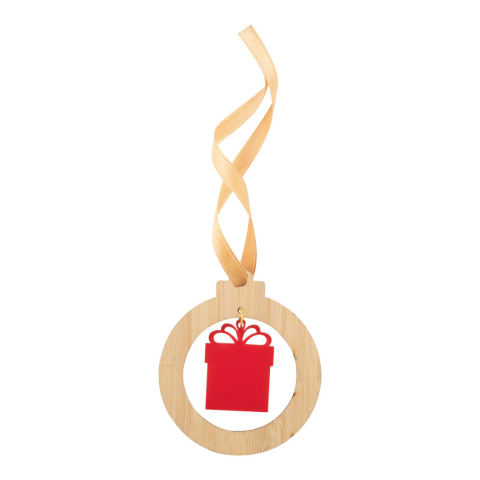 Bambusz furnér és akril karácsonyfadísz arany szalaggal. A szalagot a dísz mellé csomagolva szállítjuk.