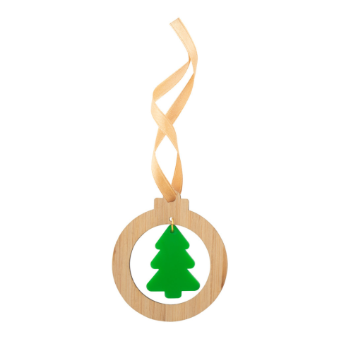 Bambusz furnér és akril karácsonyfadísz arany szalaggal. A szalagot a dísz mellé csomagolva szállítjuk.