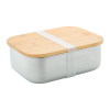 Rozsdamentes acél uzsonnás doboz, természetes bambusz tetővel és gumipánttal, 800 ml.