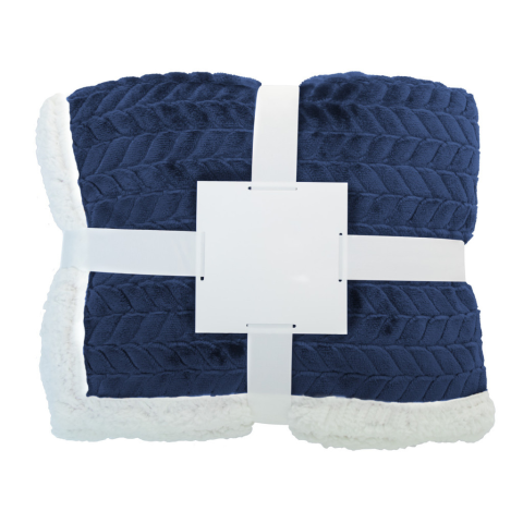 Kétrétegű RPET takaró jacquard mintázattal. 240 g/m² RPET flanel gyapjúval és kifordítható 210 g/m² RPET sherpagyapjú béléssel. Szalaggal és emblémázható papírkártyával körbetekerve szállítjuk.