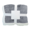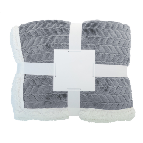 Kétrétegű RPET takaró jacquard mintázattal. 240 g/m² RPET flanel gyapjúval és kifordítható 210 g/m² RPET sherpagyapjú béléssel. Szalaggal és emblémázható papírkártyával körbetekerve szállítjuk.