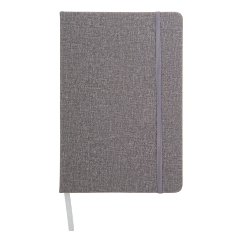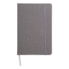 PU bőr borítású textil hatású jegyzetfüzet 80 vonalas lappal, gumipánttal zárható. A5 méretű.