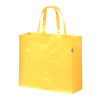 Laminált RPET bevásárlótáska közepes hordfüllel és betoldással, RPET poliészter 105 g/m². Megkülönböztető RPET címkével.