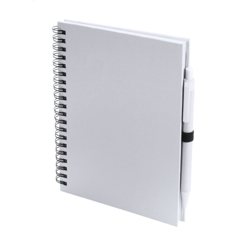 Karton borítású, 70 sima lapos spirál jegyzetfüzet, megegyező színű újrahasznosított papír golyóstollal. Kék tollbetéttel szállítjuk.