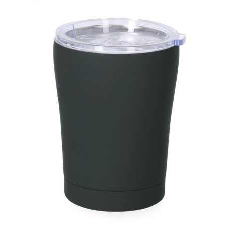 Duplafalú, rozsdamentes acél szigetelt thermo pohár gumírozott felülettel és ivófedéllel, 350 ml.