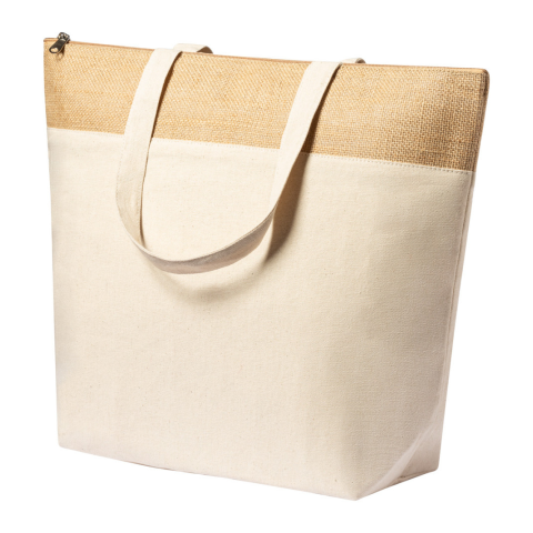 100% pamut és laminált juta anyagú hűtőtáska alumínium béléssel és cipzáras rekesszel.