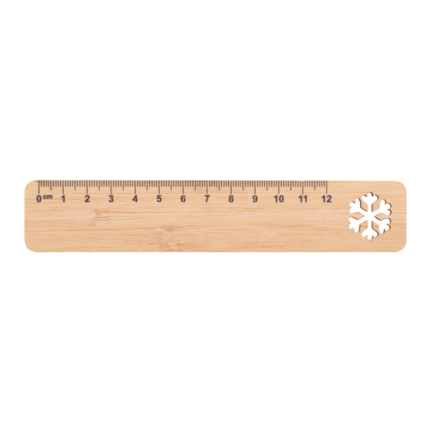 12 cm hosszú bambusz furnérból készült vonalzó, kivágott karácsonyi motívummal.