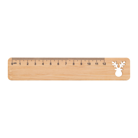 12 cm hosszú bambusz furnérból készült vonalzó, kivágott karácsonyi motívummal.