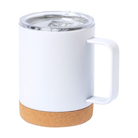 Duplafalú rozsdamentes acél thermo bögre ivófedéllel és természetes parafa talppal, 330 ml. Kraft papír dobozban szállítjuk.