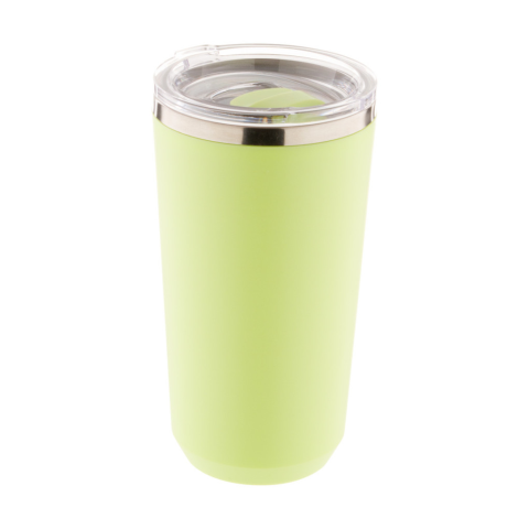 PP műanyag borítású, duplafalú, rozsdamentes acél termo pohár ivófedéllel. 500 ml.
