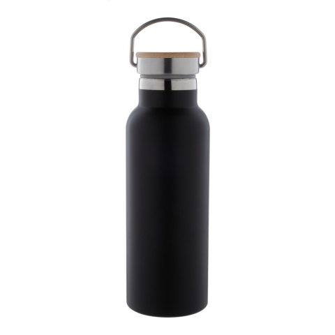 Duplafalú rozsdamentes acél, vákuumos termosz bambusz tetővel. 500 ml.