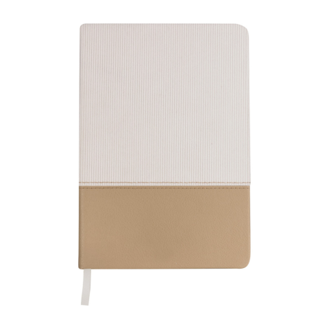 Texturált poliészter és újrahasznosított PU bőr borítású jegyzetfüzet könyvjelzővel és 80 vonalas lappal. A5 méretű.