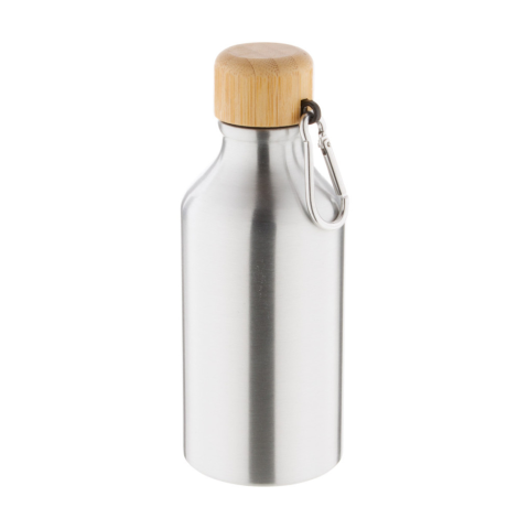 Alumínium kulacs bambusz kupakkal és karabinerrel, 400 ml.