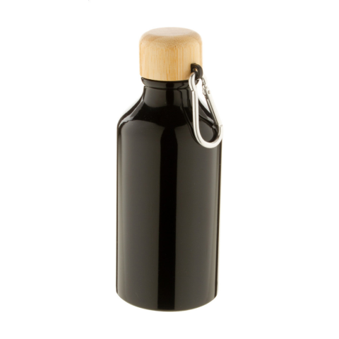 Alumínium kulacs bambusz kupakkal és karabinerrel, 400 ml.