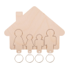 Ház alakú fali kulcs tartó, melyből kiemelhető egy férfi, egy női alak és egy fiú és egy lány formájú kulcstartó kulcskarikával. Rétegelt nyírfából készült. Mérete kb. 175×163×12 mm