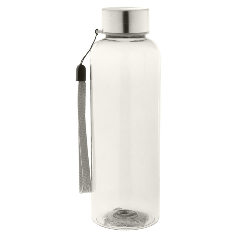 BPA-mentes RPET műanyag kulacs rozsdamentes acél kupakkal és hordszíjjal, 500 ml. Nem alkalmas szénsavas italok tárolására.