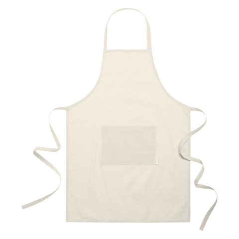 100% újrahasznosított pamutkötény elülső zsebbel, 140 g/m².