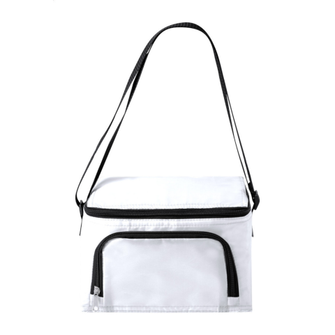 Poliészter hűtőtáska cipzáras rekeszekkel, alumínium béléssel és fülekkel. 6 darab 0,33 l-es italdoboz tárolására. 210D poliészter.