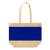 Laminált juta és laminált pamut keverékéből készült színes strandtáska, hosszú hordfüllel.