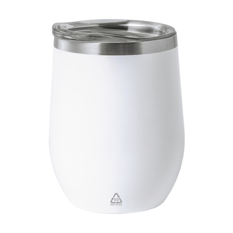 Duplafalú, újrahasznosított rozsdamentes acél thermo pohár műanyag ivófedéllel. 350 ml.