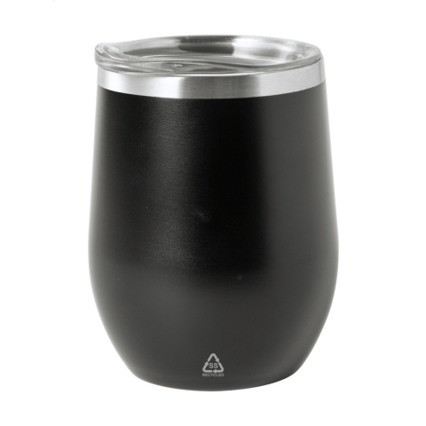 Duplafalú, újrahasznosított rozsdamentes acél thermo pohár műanyag ivófedéllel. 350 ml.