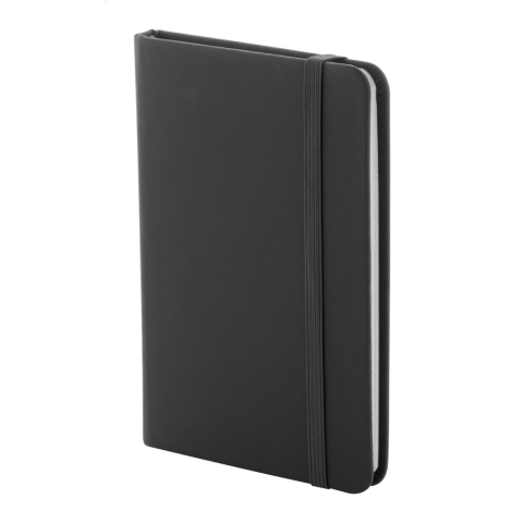Úrahasznosított PU bőr borítású jegyzetfüzet újrahasznosított papírból készült 100 sima lappal. Hozzáillő színű gumipánttal és könyvjelzővel. A6 méretű.