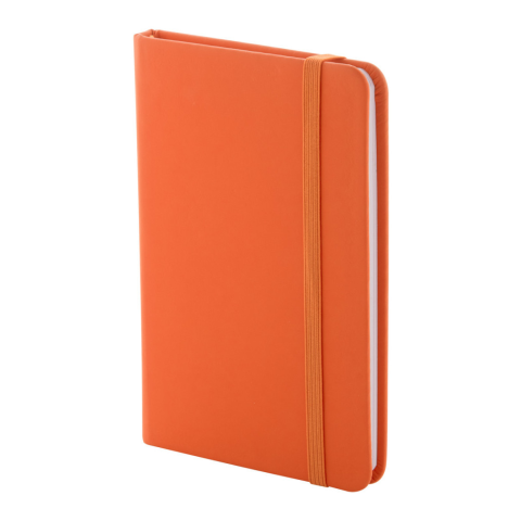 Újrahasznosított PU bőr borítású jegyzetfüzet 100 vonalas lappal, újrahasznosított papírból. Megegyező színű könyvjelzővel és gumiszalaggal. A6 méretű.