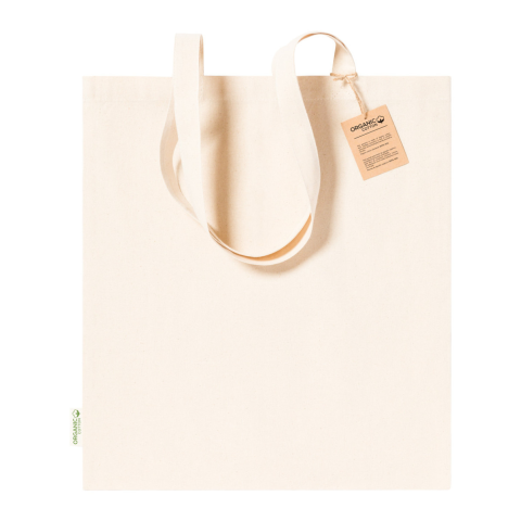Organikus pamut bevásárlótáska hosszú hordfüllel. 100% organikus pamut, 140 g/ m².