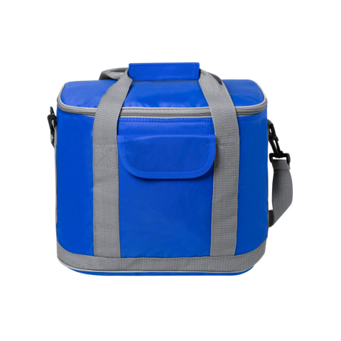 Cipzáras hűtőtáska 420D poliészterből PEVA béléssel. Tépőzáras elülső zsebbel, hordhülekkel és állítható vállpántokkal.