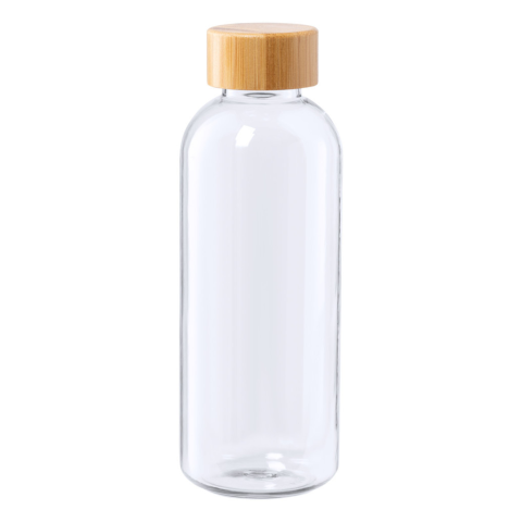 BPA-mentes RPET műanyag kulacs, bambusz kupakkal, 600 ml. Nem alkalmas szénsavas italok tárolására.