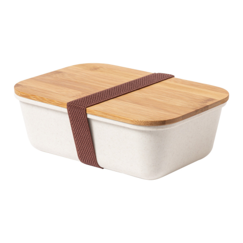 PP műanyag uzsonnás doboz, bambusz tetővel és rugalmas pánttal. 1000 ml.