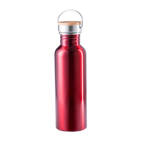 Színes, rozsdamentes acélból készült kulacs bambusz kupakkal, 800 ml.