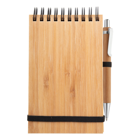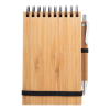 Bambuszból készült spirál jegyzetfüzet 70 vonalas lappal. Bambuszból készült golyóstollal, kék tollbetéttel szállítjuk.