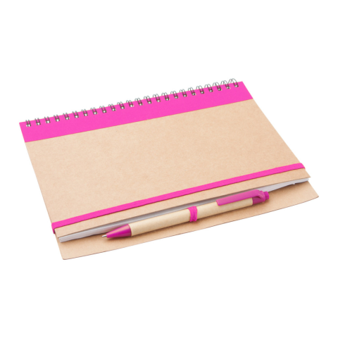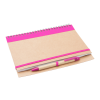 Újrahasznosított papírból készült spirálozott jegyzetfüzet 60 sima lappal, papír golyóstollal.