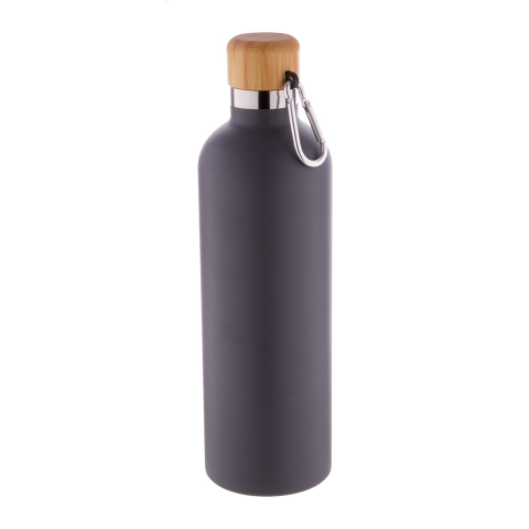 Duplafalú, rozsdamentes acélból készült termosz bambusz kupakkal és karabinerrel, 500 ml.