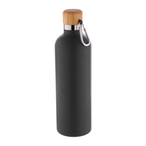 Duplafalú, rozsdamentes acélból készült termosz bambusz kupakkal és karabinerrel, 500 ml.