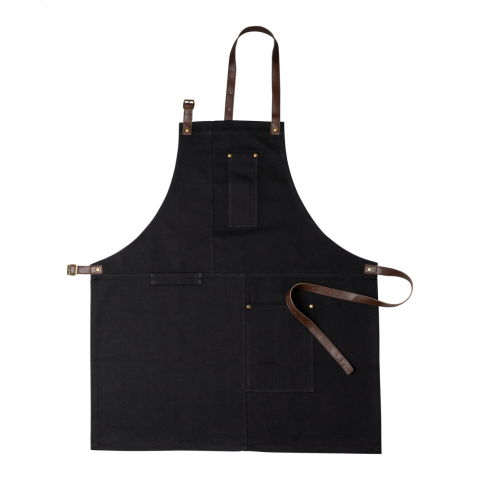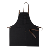 Pamutkötény elején zsebekkel és állítható PU bőr pántokkal, 340 g/m².
