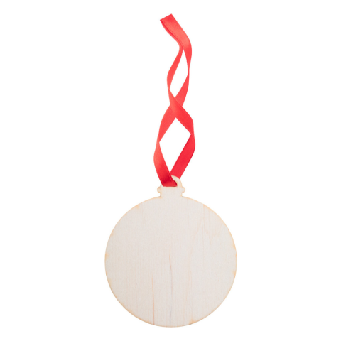 Rétegelt nyírfából készült karácsonyfadísz piros színű szalaggal. A szalagot a dísz mellé csomagolva szállítjuk.