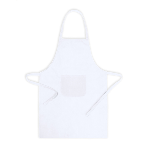 Színes kötény elülső zsebbel. 35% pamut, 65% poliészter.