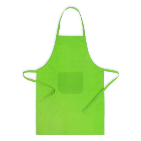 Színes kötény elülső zsebbel. 35% pamut, 65% poliészter.